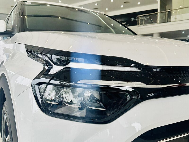Thiết kế đèn pha và đèn hậu của Kia Carens 2025 dễ gợi liên tưởng đến mẫu Sportage thế hệ mới nhất. Lưới tản nhiệt mũi hổ 2 tầng nối liền với dải đèn LED định vị ban ngày có thiết kế độc đáo.